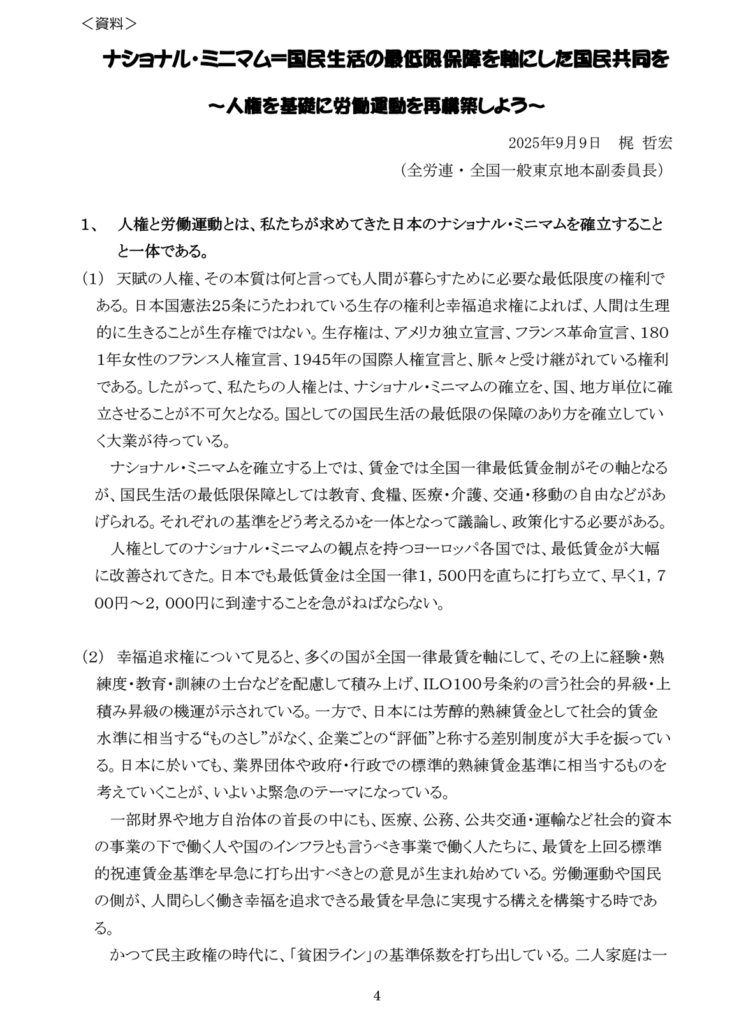 「労研」ナショナル・ミニマム議論がスタート!